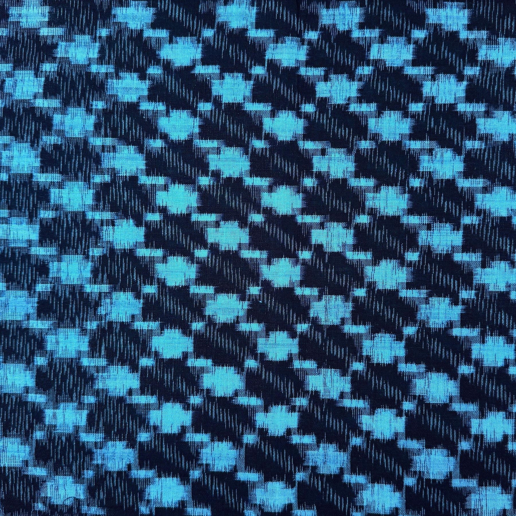Authentic Japanese kasuri cotton —ikat woven with bundle-dyed yarns.