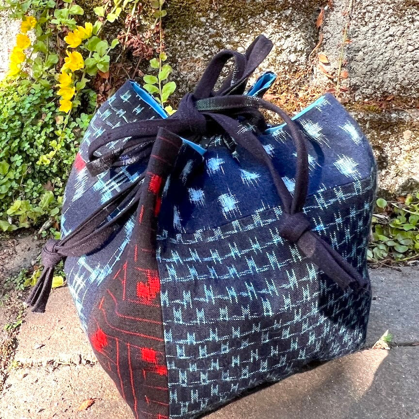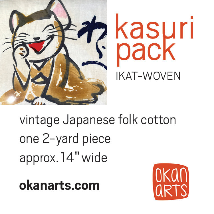 This Kasuri Pack includes a two-yard piece of authentic Japanese kasuri cotton — a traditional folk textile. The yarns are bundle-dyed and then woven to create patterns with the distinctive ikat blurred edges.
