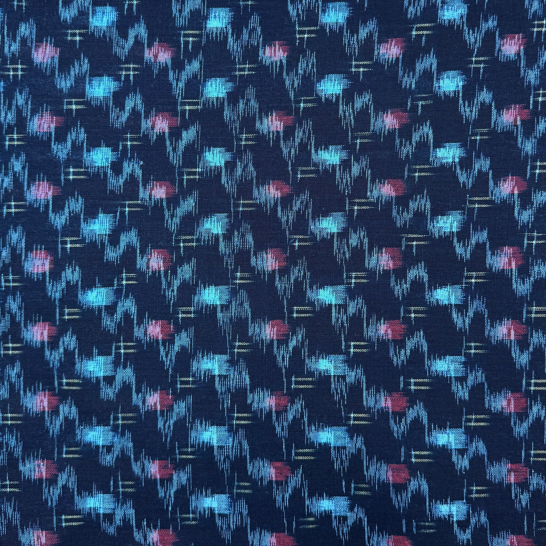 Authentic Japanese kasuri cotton —ikat woven with bundle-dyed yarns.